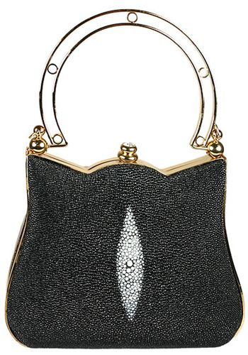 ♔ Black Handbag - Genuine Stingray Skin Leather